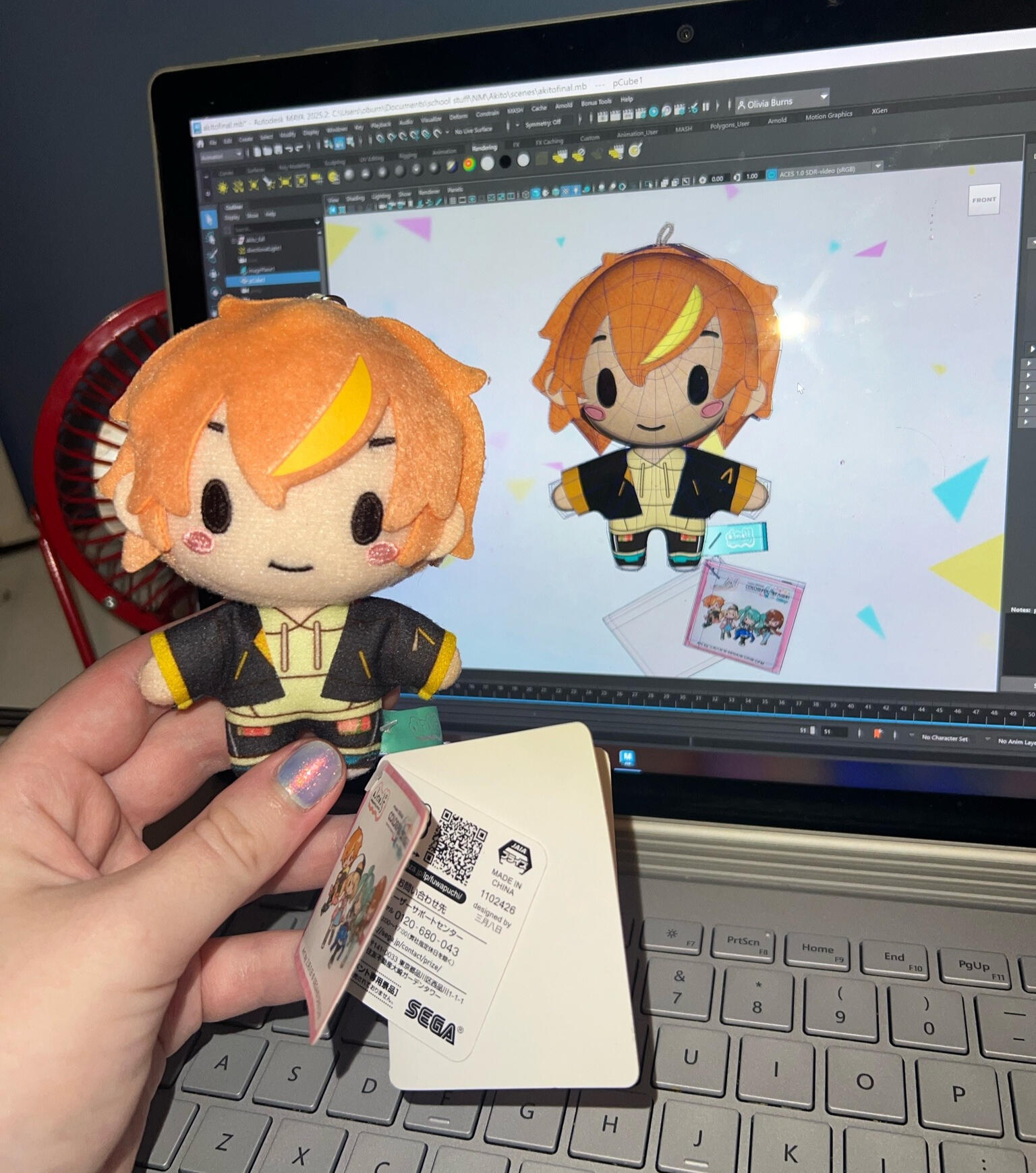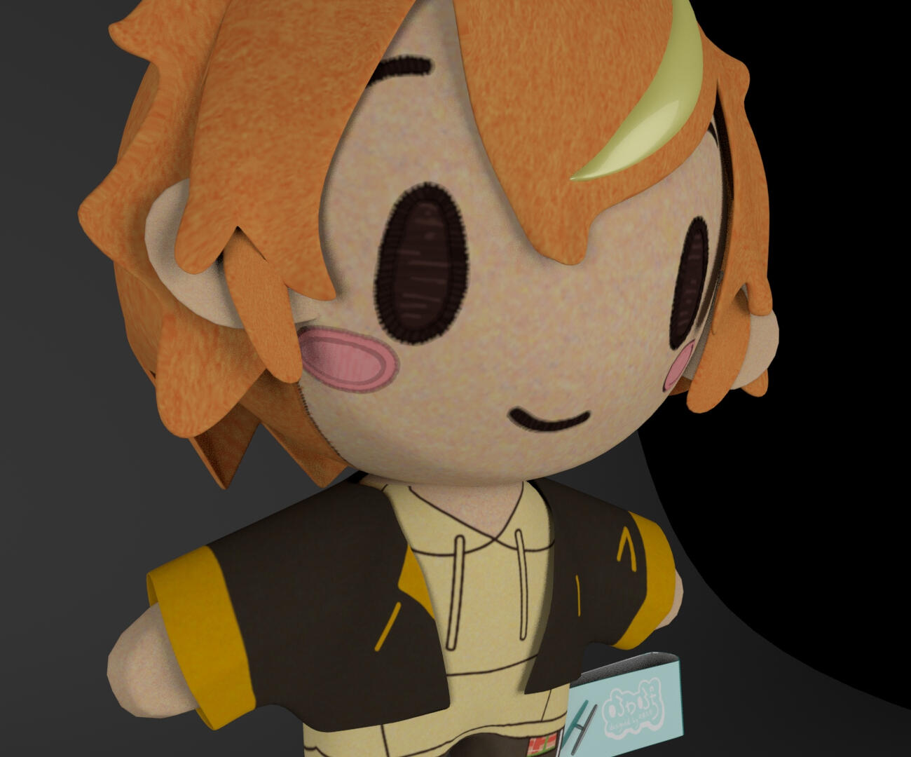 Akito Recreation is a 3-D model of a plushie of Akito Shinonome from the game Hatsune Miku: Colorful Stage. This project was created in a challenge to model an object that I physically owned and to make it as 1:1 as possible to its original form. The model was created from scratch in Autodesk Maya, which included taking reference images, blocking out the basic shapes, and creating the topology in an efficient and clean manner. I also had to create all the textures, which involved UV mapping the mesh, drawing the textures in Procreate, and lighting my scene to be rendered.