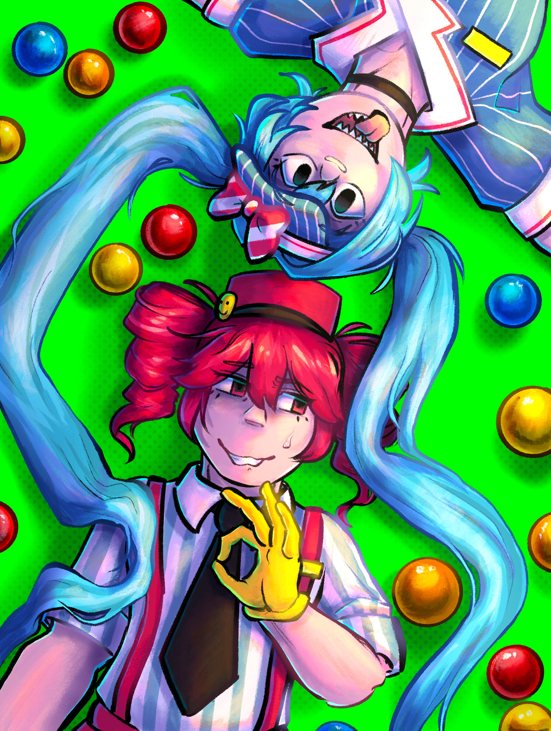 FOCUS is a piece based off of the song Mesmerizer. One of Mesmerizer's most popular traits is that Kasane Teto, the red-haired character, is giving out silent signals for help throughout the song that are easily missed. I wanted to challenge myself to make my own easter egg in this way as well. While it may appear that Teto's making an "OK" signal with her hand, I designed the composition so that, along with the hair falling around her, it secretly spells out a cry for help: "SOS".